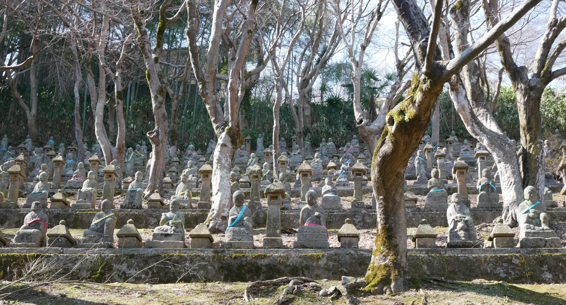 “The Chokei-ji is a Buddhist temple belonging to the Soto school of Zen Buddhism situated on Mt. Kureha in the suburbs of Toyama City, in Toyama Prefecture. The main object of veneration at the Temple was originally a Daibutsu (Great Buddha Statue) known as the Sakuradani Daibutsu; however, this Statue was removed in 1870 as the result of an order issued by the Toyama Domain, and today only the head remains. Behind the Temple, over 500 stone statues of the Buddha’s disciples stand facing the Tateyama Mountains.”
